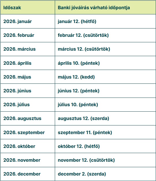 Nyugdíjak, nyugdíjszerű ellátások utalása 2026-ban