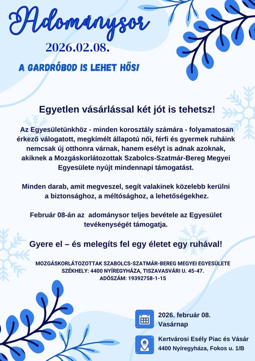 támogathatjátok a Mozgáskorlátozottak Szabolcs-Szatmár-Bereg Megyei